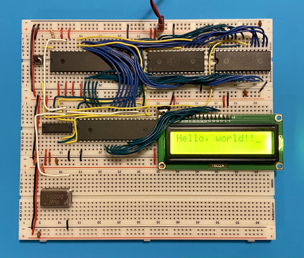After this project, I bought Ben Eater’s 6502 computer kit and built a working computer, complete with an LCD screen for output. This was driven by a crystal clock and again used EEPROMs for storing the program. In this case I really was building a computer with a 6502 CPU and a 6522 input/output IC. I have since bought a Z80 CPU, but I haven’t had time to build anything with it yet. One day!