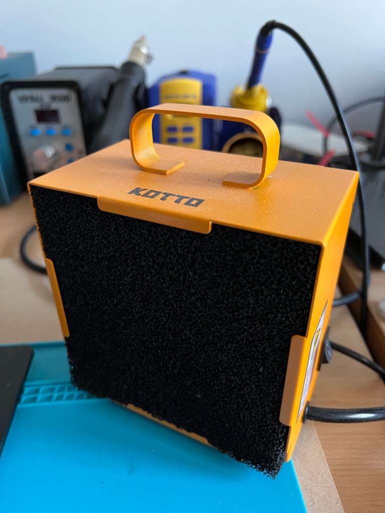 Flux (I use Amtech 213 at the moment) is pretty toxic, so some fume extraction is essential for your health. Since I don’t have a lot of space, I opted for a cheap Kotto. It does the job given the amount of soldering I do (not that much). If I was soldering all day, I would get something more substantial.