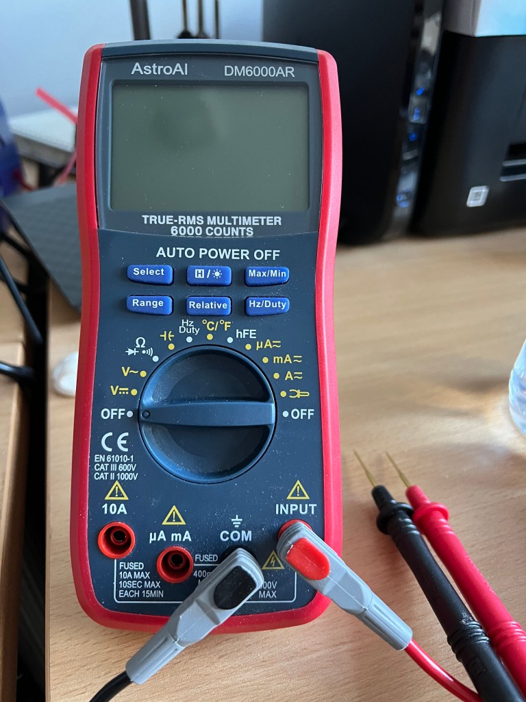 I also needed a multimeter. I ended up buying a few over the weeks, but the one I use the most is an AstroAI DM6000AR. Most multimeters are fine, I think this was around £25.